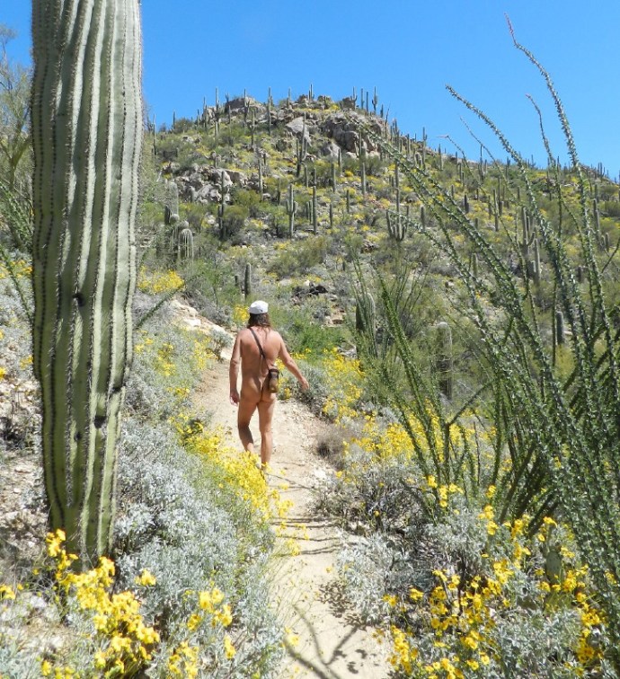 I feel the pleasant sense of liberation, knowing that I don’t have to dress. My nudity is accepted, a norm and not a surprise to anyone. Everyone is pleasant, whether they chose to dress on the trail, or not. There is nearly always a friendly greeting, or a smile. From that sign, we are in liberated territory. Life is as it more ideally could, or should be.