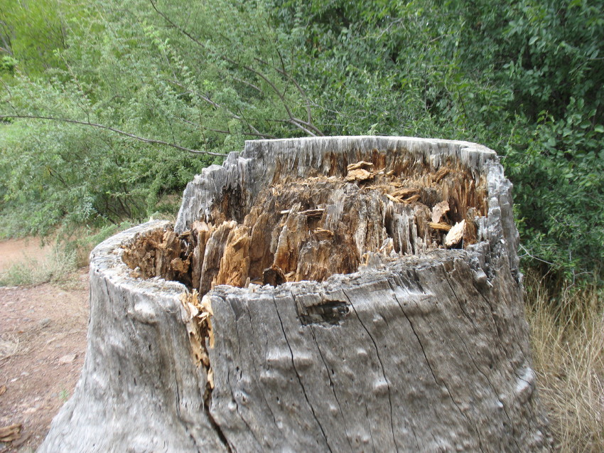 Our tank needs to be filled in Camp Verde when we escape the Interstate. After hours in desert and sprawl, there is contrast of fertile green things here. The Verde River flows through. The town pops out around it in the riparian forest.