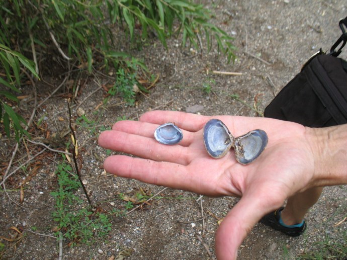 There is a pond here, now. Where the river used to meander, a major flood has cut through. We make our way across the flow caused by a shoot in the river, which empties the pond.