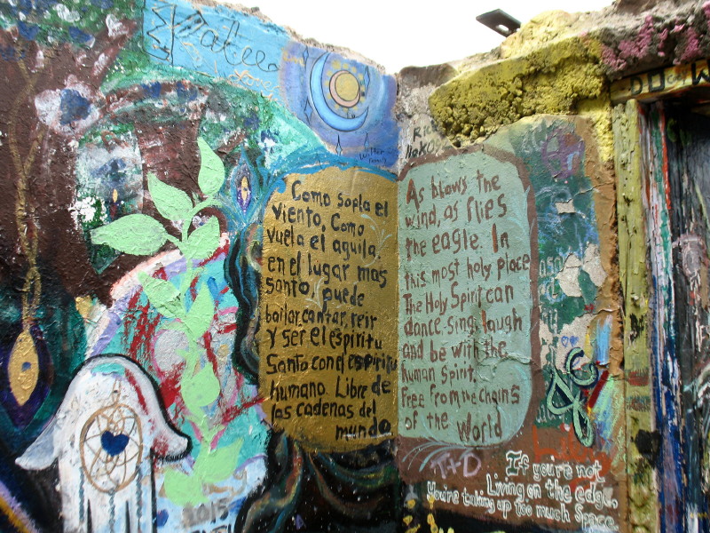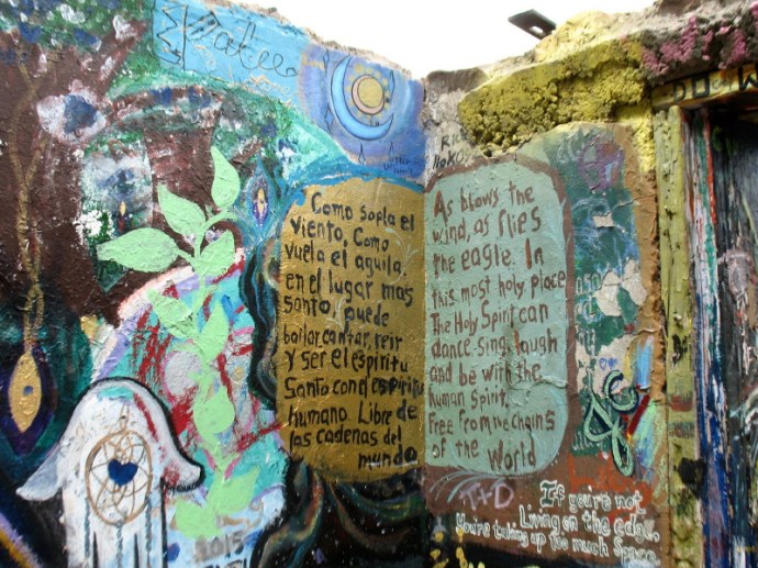 After the rest, I make my way into the building. The waters rejuvenate me. I sit, I reminisce, I read the enduring hippie legacy on the walls.