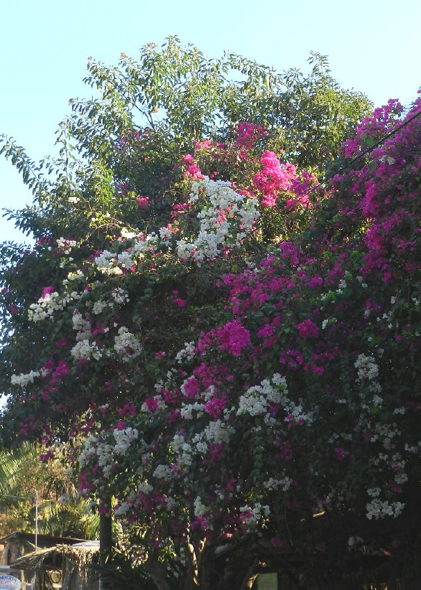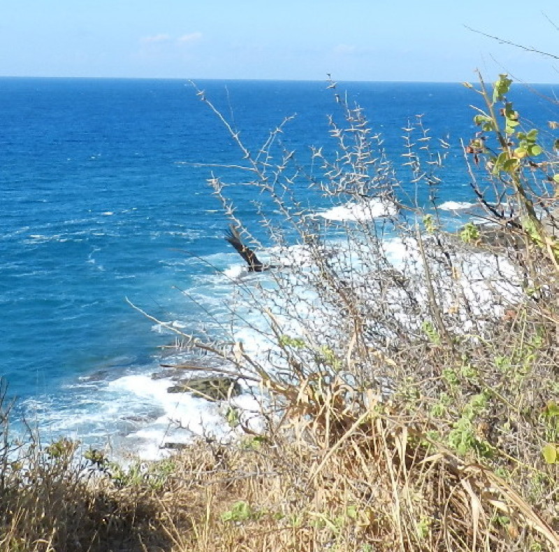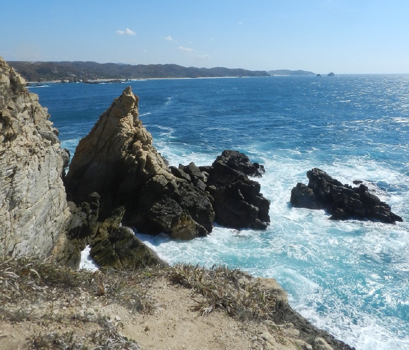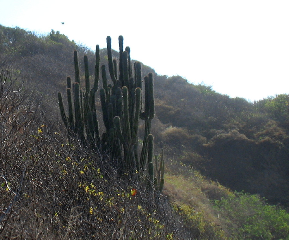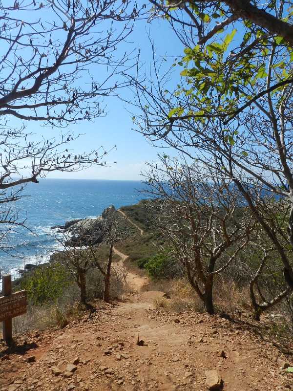 It is a preserve for the natural flora and fauna. A hillside path takes us through a dry jungle. It is the dry season. There are openings here and there to a vista of the coast of Oaxaca.