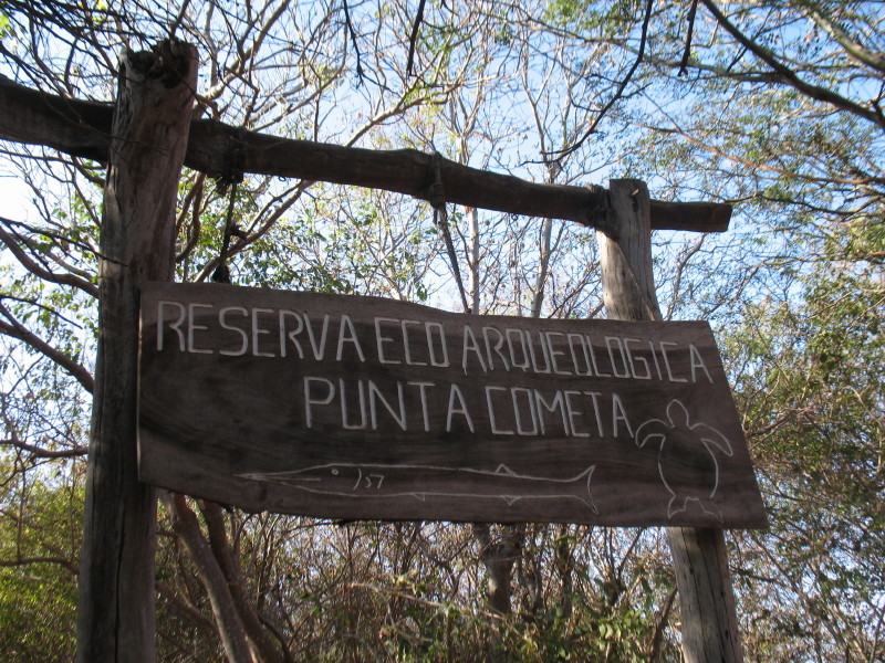 After looking through a fence at a lap pool, and a stone fortress keep, signs tell us that we are at the “Reservo Eco Arqueologica Punta Cometa.”