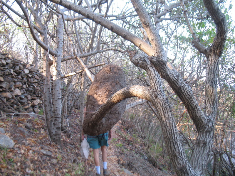 “Giante” termite lodgings hang from trees. Thick vein-like trails link them from the earth below.