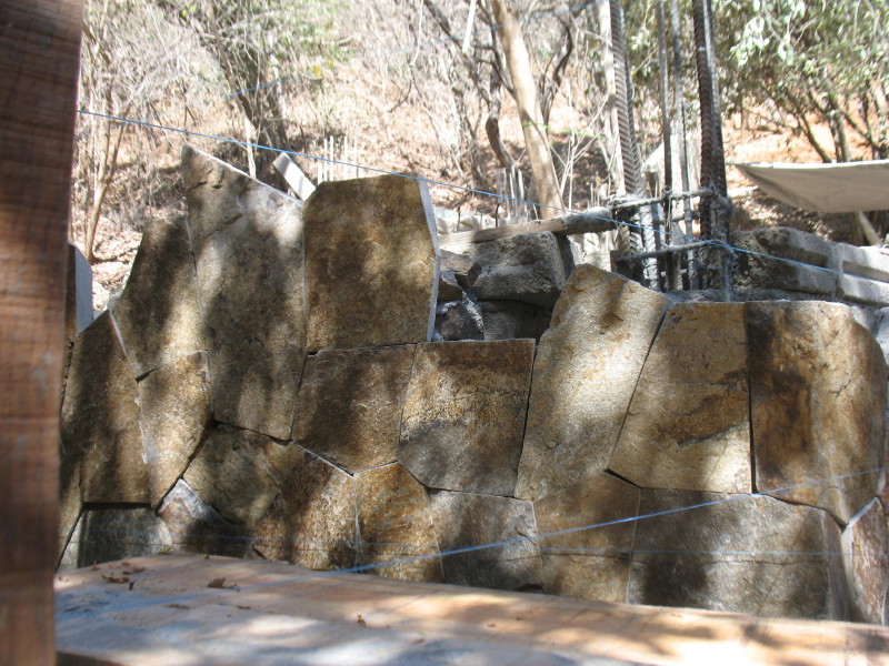 We turn right along the trail that leads to the commercial beach. There has been a castle keep built and 10 bucks a day laborers are still building, cutting the stone in an intricate maze of patterns for a rock wall.