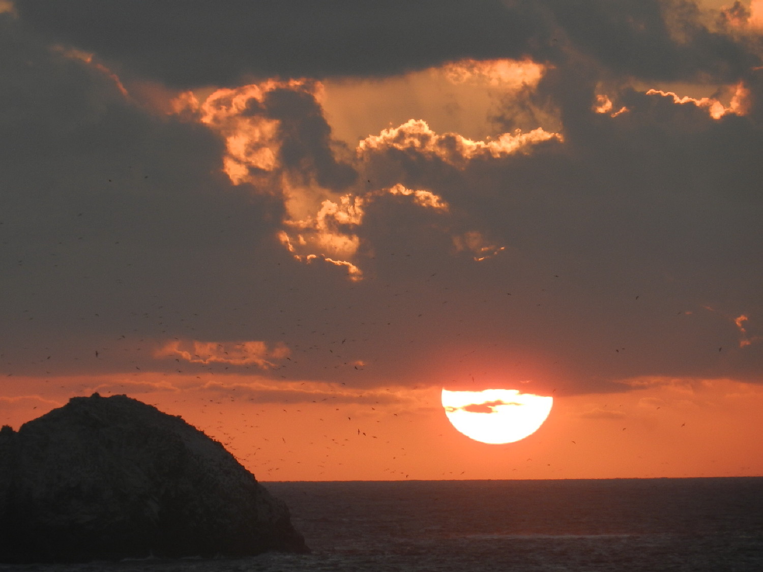 I turn southwest toward Roca Blanca Island; the rich blue waters contrast dramatically with the creamy white dome. Closer, before me, the first flight of pelicans glides through the air close to the water.