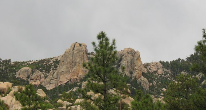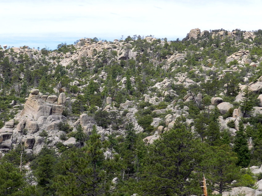 We carnude the long winding Mt. Lemmon Highway to Summer Haven and then through to Marshall Gulch trailhead. It is a familiar trip that has never ceased to capture my awe. It rises through the various ecosystems from desert (2500 feet altitude) at 105F to a lofty cooler pine coated low 80F’s (9200 feet). Along the way, rock formations and vistas entertain. This is just a beginning to a wondrous trip.