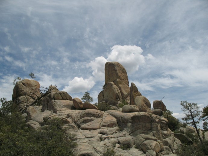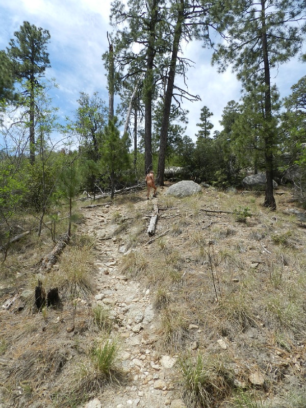 It is great weather up here. We’re camped up near Lemmon Pools in the Catalina Mountains. We have all day to explore the Wilderness of Rocks Trail. We can go beyond the farthest point that we have hiked, so far. We can go to the trail’s end and then as far as may be interesting on the intersecting trail.