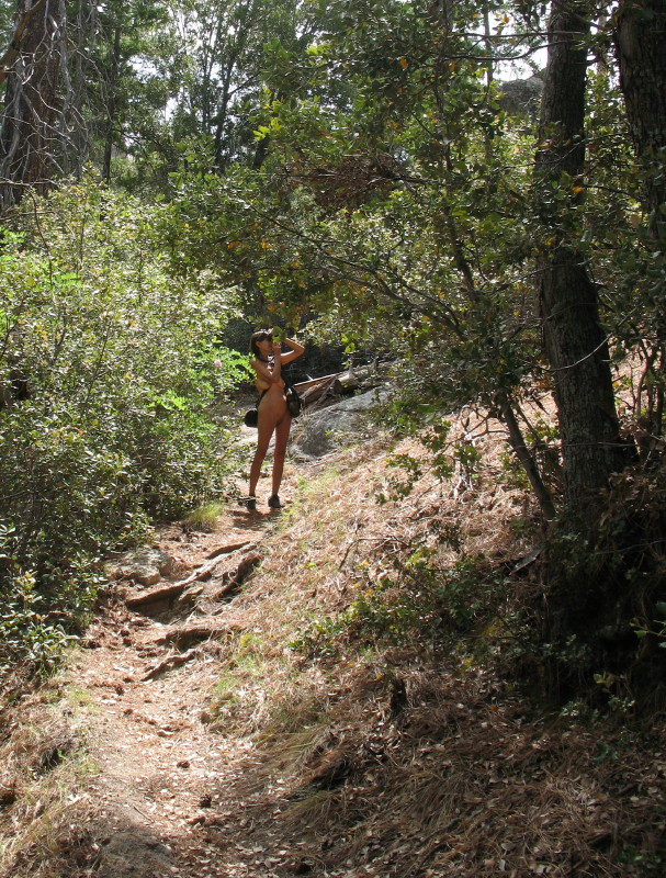 We plan to be back for a noon lunch, so DF takes only a few grapes to snack. With the shorter distance and it being only 9am, we figure that we only need a liter water bottle and a camera each. The plan is to wear only moccasin-like toe shoes in a sense of complete nudity and unencumbered freedom. Our nakedness here in the wilderness feels very good.