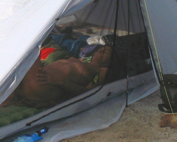 When I catch up, his two children are dutifully hanging a hammock camp on the trees, I figure upon the older man’s orders. This does look like a fine campsite.