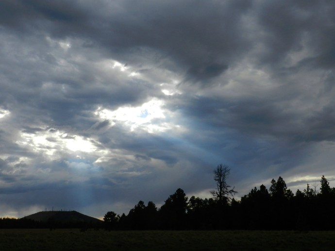 Here on top, it seems that the weather and clouds circle around us, instead of rolling over unobstructed. The black clouds may be complimented by blue skies to the north, silver to the west, or fluffy white. They are creating gargantuan critters in their shapes.