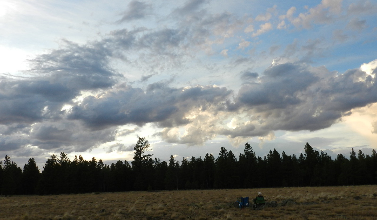 At this time, things are breaking up. Our plan is to simply sit in the middle…somewhere. Out in the field, it is a 360 degree view, only distant trees are lining the horizon in a grand circle.