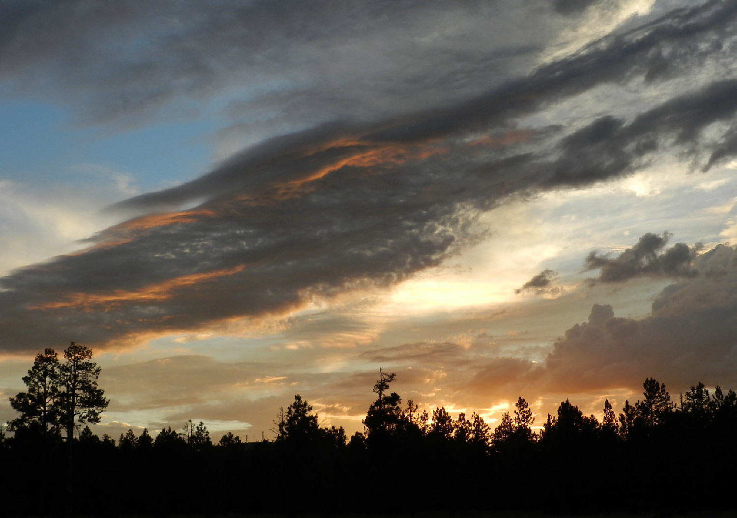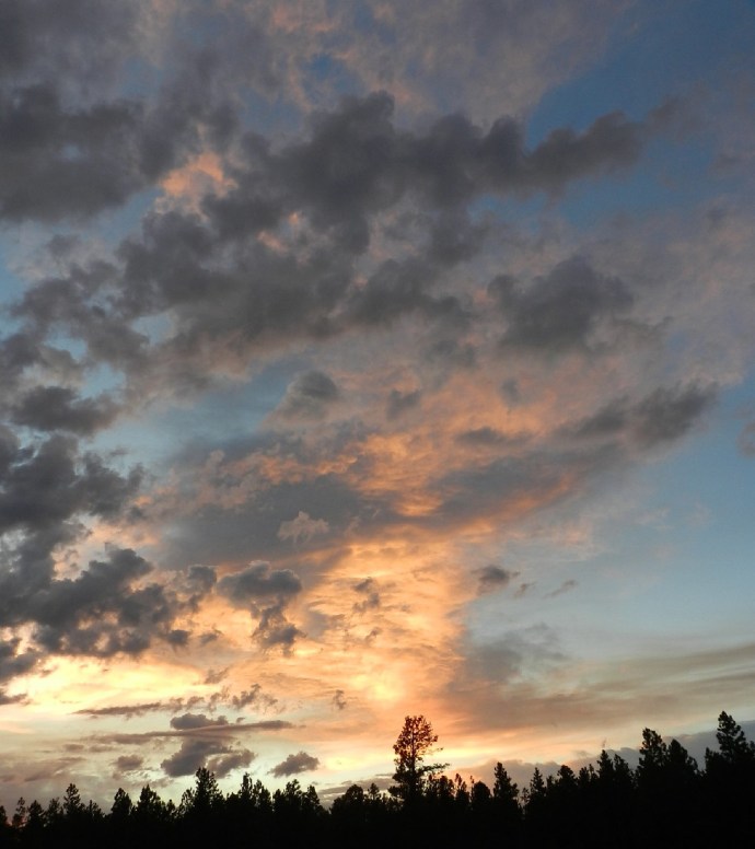 There have been dark clouds to the south since noon. They have threatened, but the rain drops seldom have made it down to our level. Instead, wispy grey clouds of raindrops have been waving like an old man’s long beard, dissipating before our eyes, as we witness the skies.