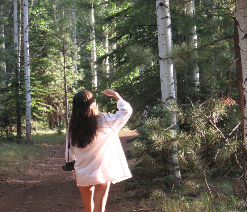 The warm temperature of the day is succumbing slowly to night’s brisk bite. We have been danced with all of our senses through this day, Our skin feeling the lush caresses, as various scents of pine float up our nostrils.