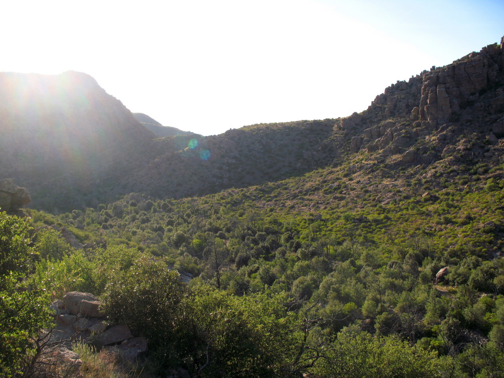 It is already shady in the creek and I mistake the time for five. On that information, we decide to explore 30 minutes out and 30 back before the equinox darkness. We take off at a clip, snapping pictures of the impressive scenery.