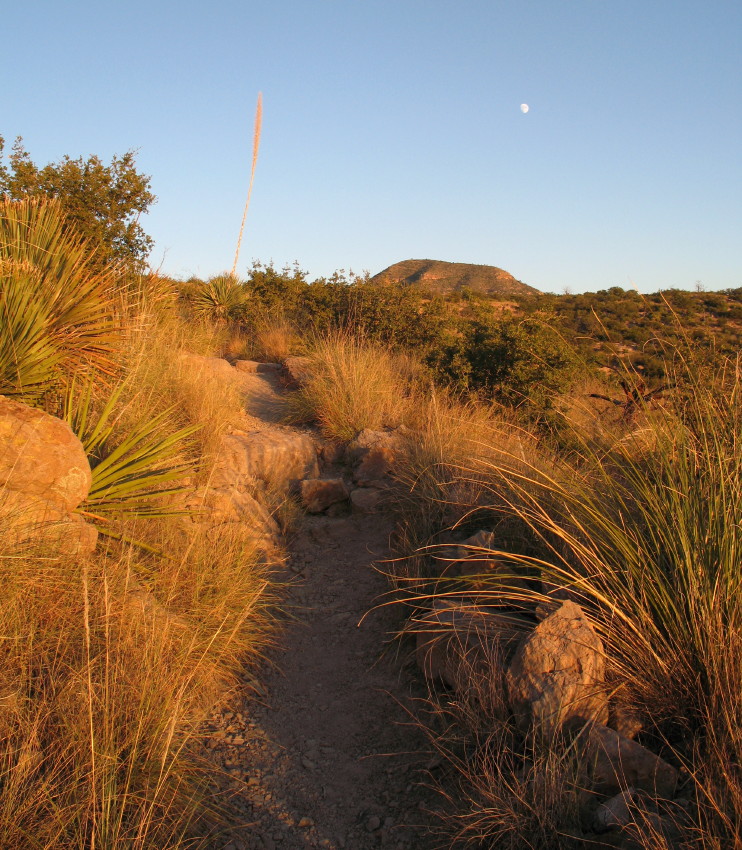 We walk just a little more and then a few feet after that, looking further up the trail looking for signs of it ending, to complete this goal. It isn’t going to pan out. If we get to the bridge, we will be walking back into the rocky steps in the dark. We have left two flashlights in the car. This is the time of day that rattlesnakes will begin to roam and there is tall grass everywhere. We have to return.