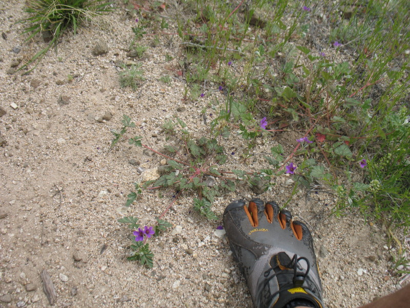 The sandy wash’s bottom is soggy. My toe shoes sink in spots instead of gliding on a stiff dry surface for walking.