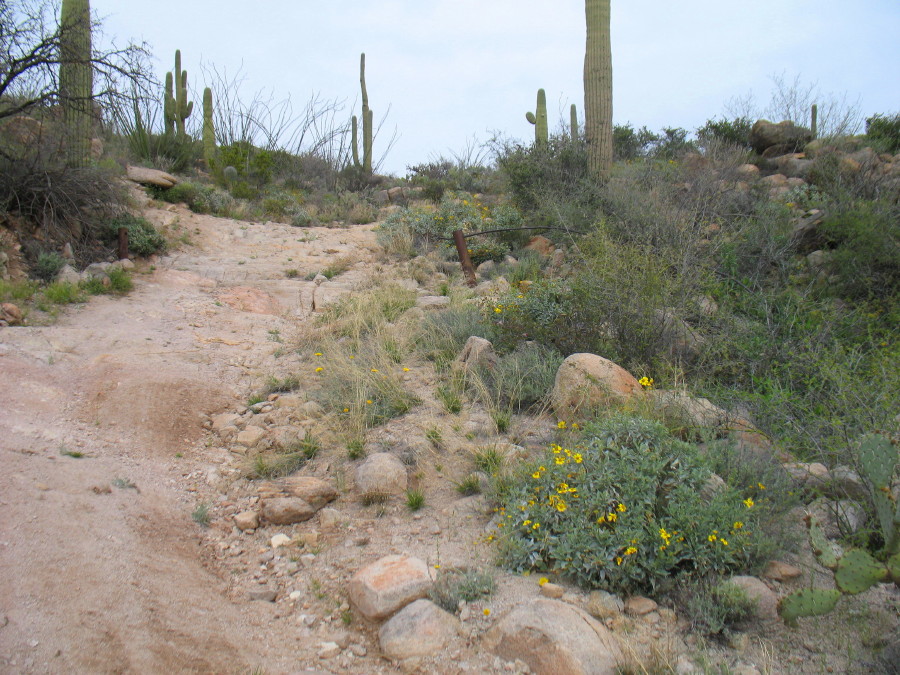 My house is on the market. When it is shown the realtor insists that I disappear. She’s afraid I’ll somehow blow her deal. I’m given a two hour notice and expected to wander for an hour, or more. Today, right now, it’s one of those times when I have to stay away for a while. It is overcast and not particularly warm, but the equinox is coming and there should be some Spring flowers to see in the Tortolitas. I’m feeling some stress, so this seems like a good time for a hike. The exertion should calm me. The usual practice of being in mindfulness will bring me back in the moment. Nature should heal me with her magic.