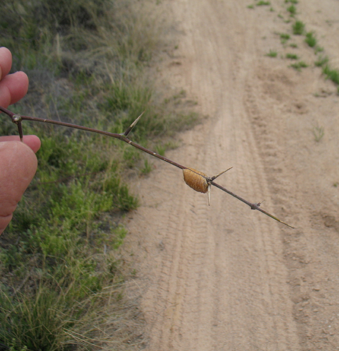 I mistake the next little gulley of a canyon wash for my destination, but then very soon, I recognize a landmark. It is a hackberry bush.