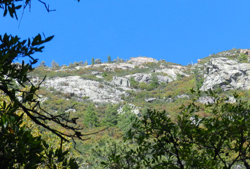 A bird of stunning color, flies above and lights in a tree. It must be a relative to a parrot. I’ve never seen one like this on this side of the border. Animals travel through these sky islands, which link to more ranges and ecosystems deep into Mexico.