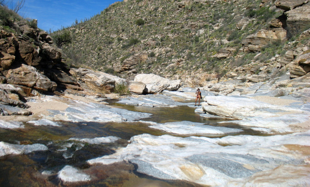 From the get go, I have shed my clothing and a man’s world at the same time. All I have is a water bottle and a small roll of cloth to protect my shoulders from too much sun. The roll is not to be worn. It merely pillows my head, as I lay resting on the hard granite surfaces. The sound of water coursing and falling drowns out the endless silly thoughts that occur as voice. Laying in the groove of a smooth rock, grounded by the energies of the Earth, is a connection to all that really matters. The Earth kisses and sucks the moister from my back as I lay, as if pulling what I don’t need out. It is like detoxing the world of thoughts. Those endless silly thoughts might be floating away down the stream.