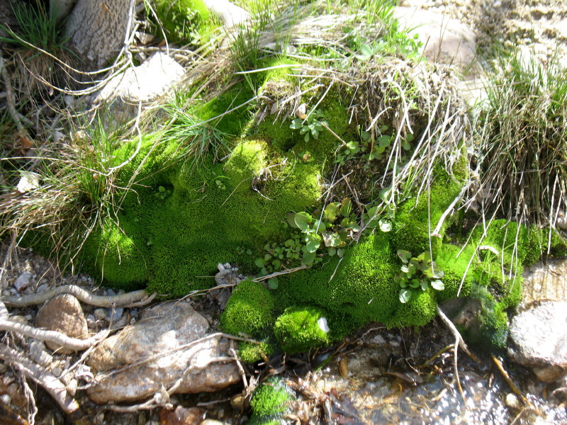 It is familiar here. The solitary uncharacteristic red rocks and the widening of the stream, are just out of the steep canyon walls. We look for ways to cross the shallow expanse.