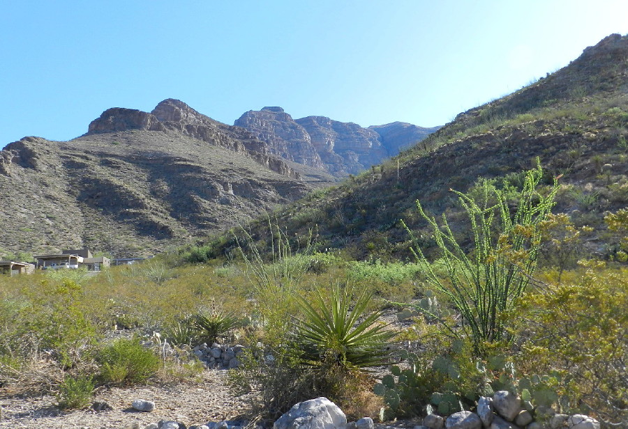 I look to the forecast and the evolving satellite weather map. I look out at the storm across the vast valley from here, ground level. I figure odds are that the storm will pass west and south of the mountain range. We’re feeling hopeful. We drive off to investigate the Oliver Lee Memorial State Park.