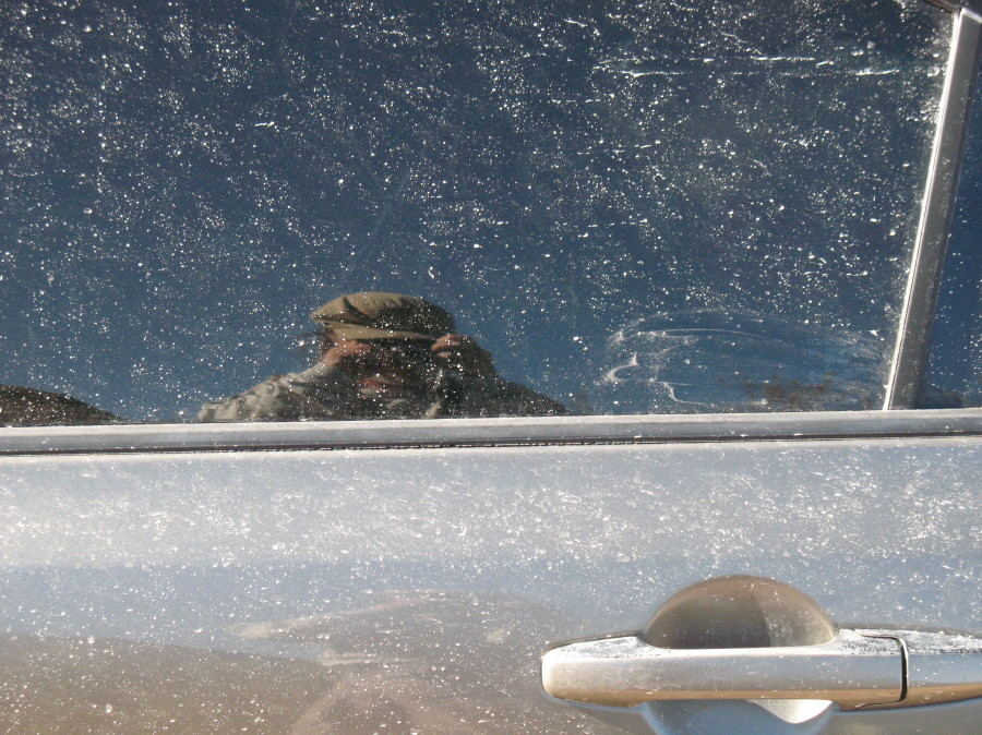 We inspect the car that we started out with. It is coated with fine white powder, spotted like a Dalmatian by the large rain drops that found their way to us in the sandy storm, earlier in the day, at White Sands National Monument. It isn’t a sand blast, but more like flour dust stuck to the metal and paint. Oh, well….