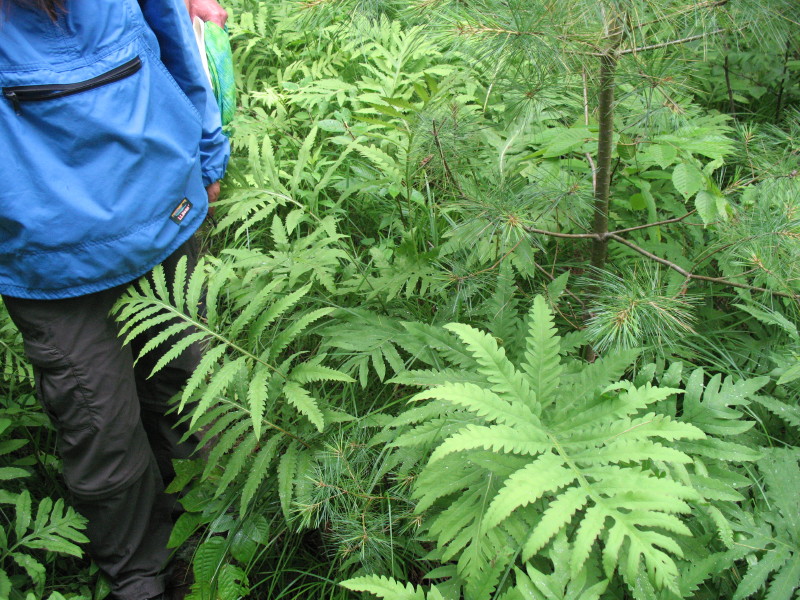 We take to the lower parking lot with its family oriented picnic area and then are lead off to the trail where “people don’t go.” There is thick foliage. Here on the edge of the forest, like a hedge, plants take advantage of freedom from oppressive deciduous competition.