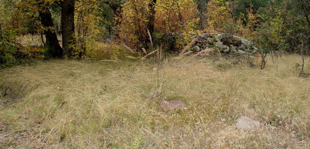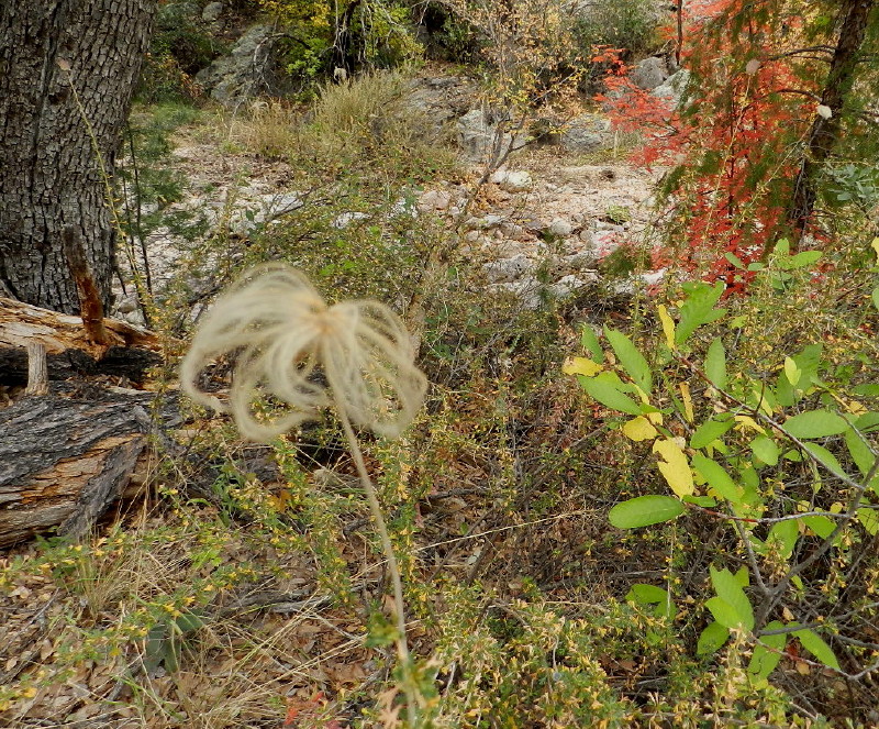 We find the alligator juniper, juniper and scrub oak along the dry creek. It is shading RV trailer campers.