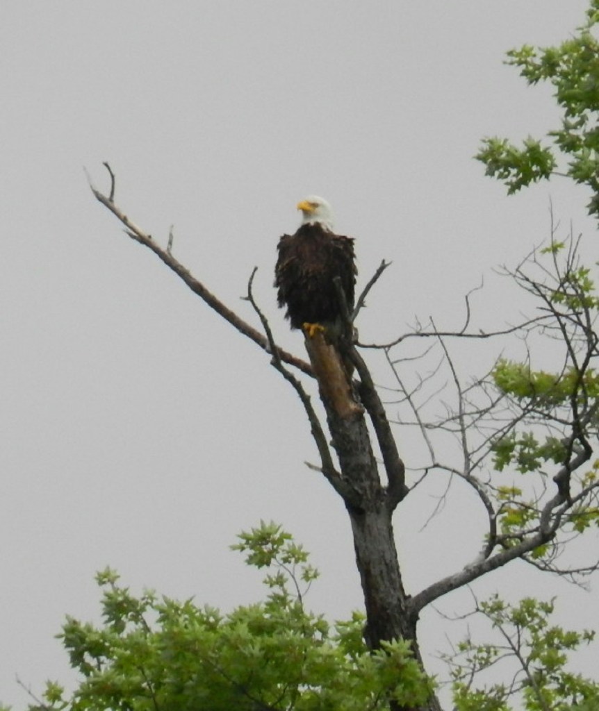 Resident Bald Eagle Ruffles Feathers Next to the Lake