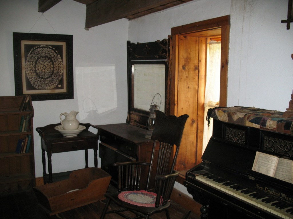 Then we enter a one room sod home, much like the family pictures that I have. There is no privacy, just a sense of practicality. It feels warm today, but those floors were cold in the winter. People were known to keep off of them and jump into bed. Family privacy just had to be a practical affair.