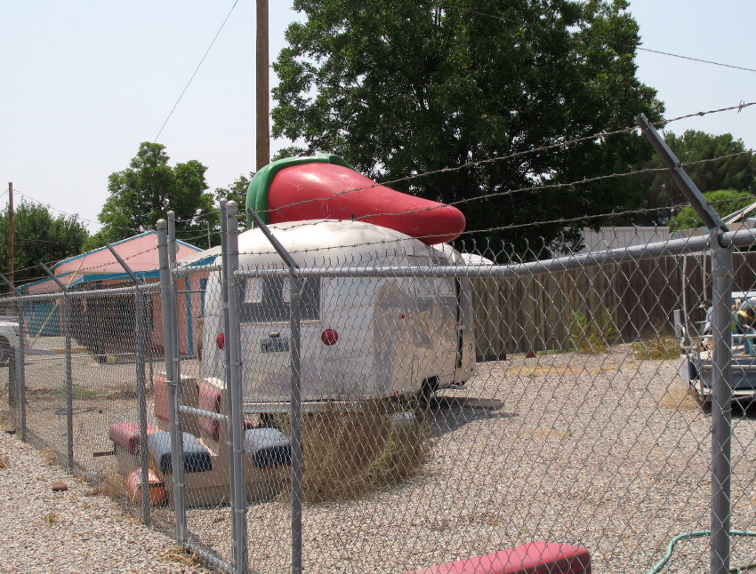 Hatch, the “Chili Capital of the World” is capitalizing on its reputation. There, an airstream trailer has been crushed by a giant red chili pepper.