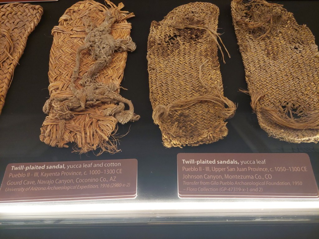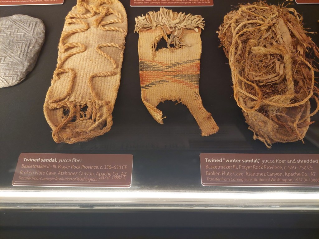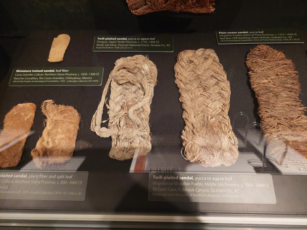 I visited the University of Arizona a couple of days ago. I found the evidence. While most Native cultures around here were pretty much nude, there were shoes to protect feet, at least while running hundreds of miles across wilderness desert.