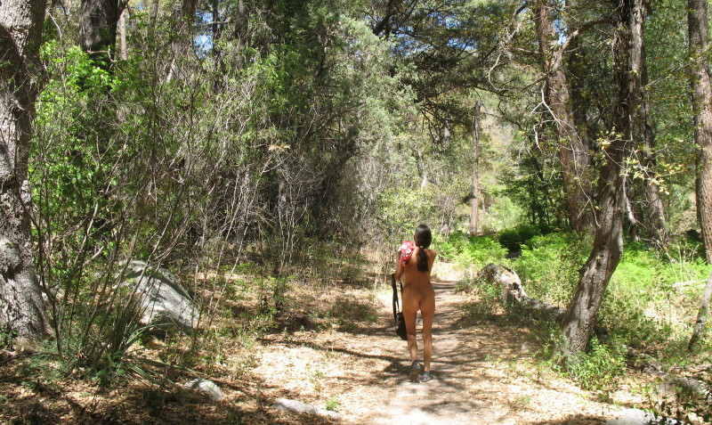 About half the way, we pull off into a familiar small parking lot on the side of the road, at around 7000 feet. This was the trailhead for our Lower Bug Springs Trail hike a couple of years back. With birthday celebrations in the order of our day, we have decided to do this shorter easier trail in the compressed time that we have. DF wants to feel nature, the solitude, the sensual nudity and be in touch with a grounding spiritual experience. It is her day, her celebration.