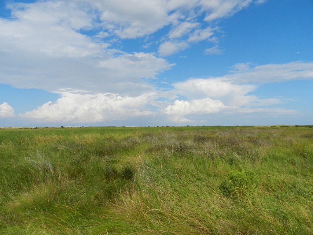 With our tour complete, we look down a three fourths of a mile long boardwalk across the marsh and a field of the tall grasses that vegetate the island.