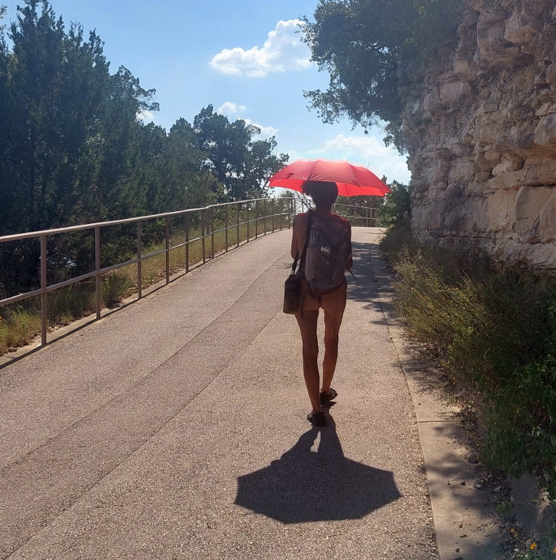 I share with her, or just walk nude in the breeze and tree shade, when it is available.