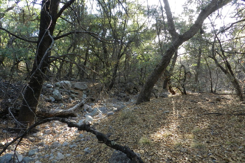 There is a curious trail leading into the riparian forest from camp. It is found out to be just tread marks from past campers looking for a spot closer to the creek, which lies out there a few hundred feet. None the less, there will be no problems of obstructions hidden under leaves and a quieter walk without the crunch of those stiff dry leaves. Besides, it goes somewhere and it will also lead us back to camp.