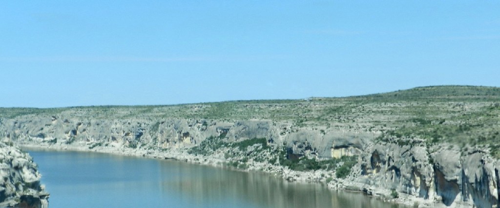 I want to make a point to check the famously super blue waters of the river in the Amistad Recreational Area. There is supposed to be something very special about their blue. They do reflect the clear sunny sky, as we cross on the extensive bridge system, near the Rio Grande at the Mexico border.
