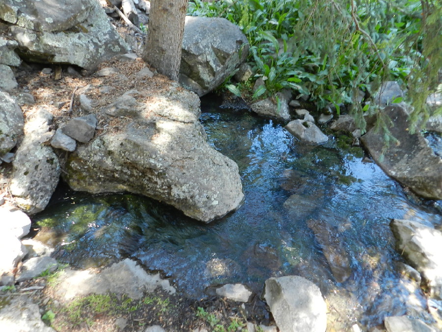 The water level is just below my perch, where the stone slopes into the creek. My hand experiences a refreshing temperature, as it submerges from air to liquid. I feel its resistance to the push of the flow. I remove it and then I sit still.