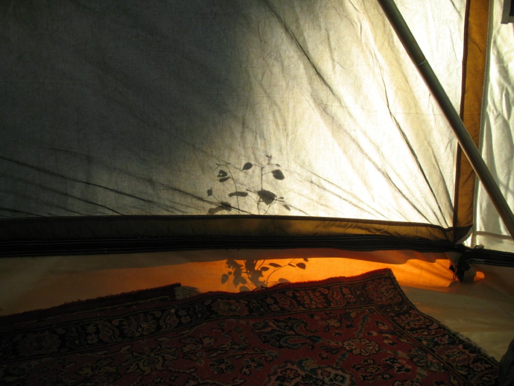 It will be a nice evening in the warm dry tent tonight, sitting on the soft Oriental rug with its lumps from an imperfect surface under us, close to the earth.