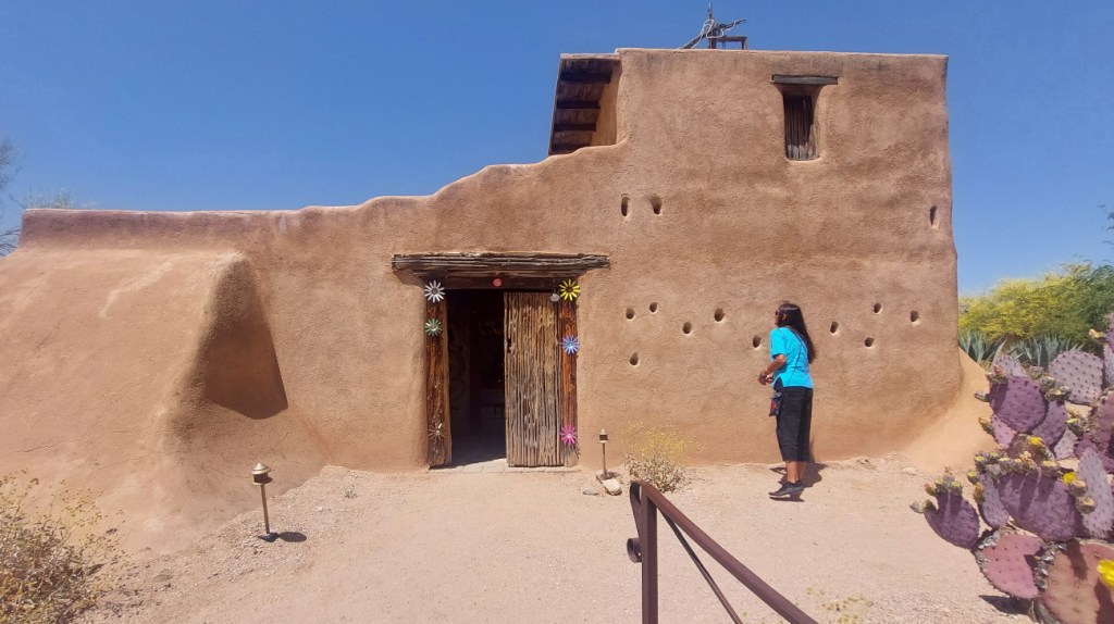 We spent a birthday up at Ted DeGrazia’s gallery in the foothills of Tucson’s Catalina Mountains. It has been a while. I love to wander in his old home. It’s an oddly shaped, textured and painted, creative endeavor, which states some down to Earth values.