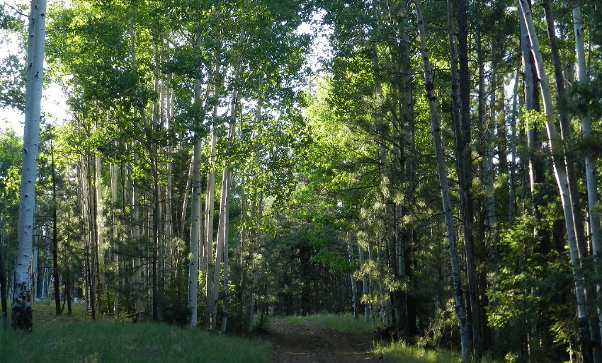 We’re just back from what might have been a short walk after dinner, but one thing leads to another and it extended to a three mile exploration around the great field. We have rambled through the forest, which looks like enchantment decorated by pine, aspen and spruce, with a plethora of smaller treasures along the way. This is our story: