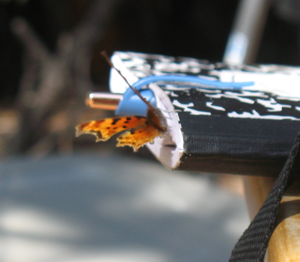 Troubling insects were not the only populace. There were butterflies that were downright friendly. We, especially DF, would be quietly sitting in a chair reading and one might just stop by and have seat on an appendage.
