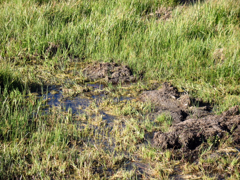 We walk the massive field, finding spring water is creating mushy grasslands in spots. Here after a drought, we’re surprised. We could understand the darker green grasses, but standing water coming up out of the earth is something else. It had been a wet and up here, a snowy winter.