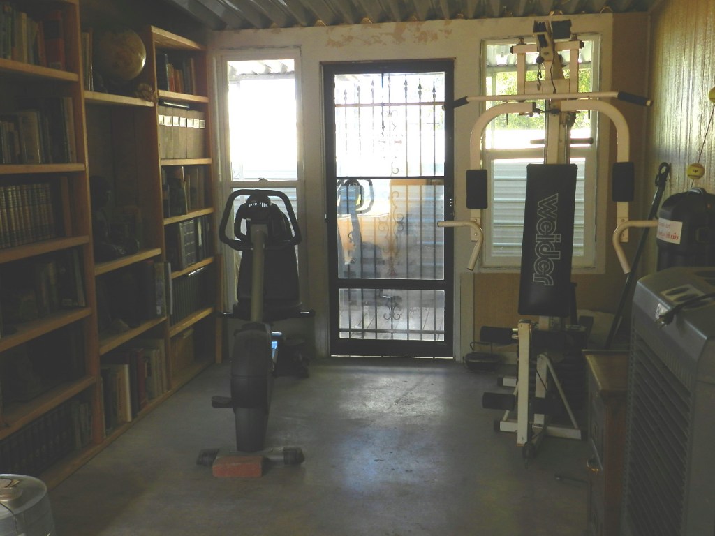When I placed a dining table and furnishings on the enclosed porch, it became a good extra space to stretch, exercise and entertain. I placed my stationary bike and exercise gym equipment in a less used area.