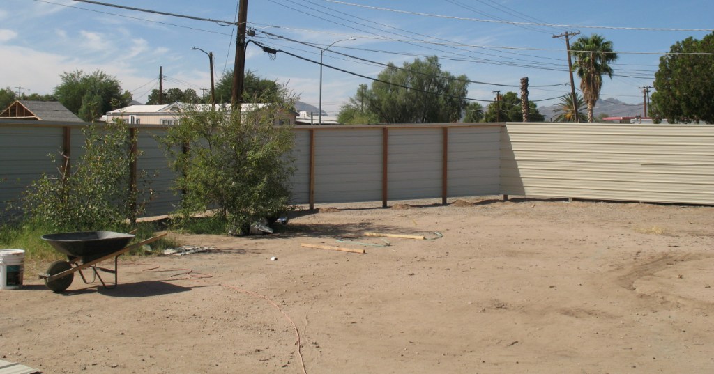 With the six and a quarter foot wall all around, my privacy has given us good tans and Vitamin D all year long. I have practiced barefoot living with evolving success, correcting my posture and gait. I’m using my muscles by bending and squatting, lifting and other necessary natural movements.