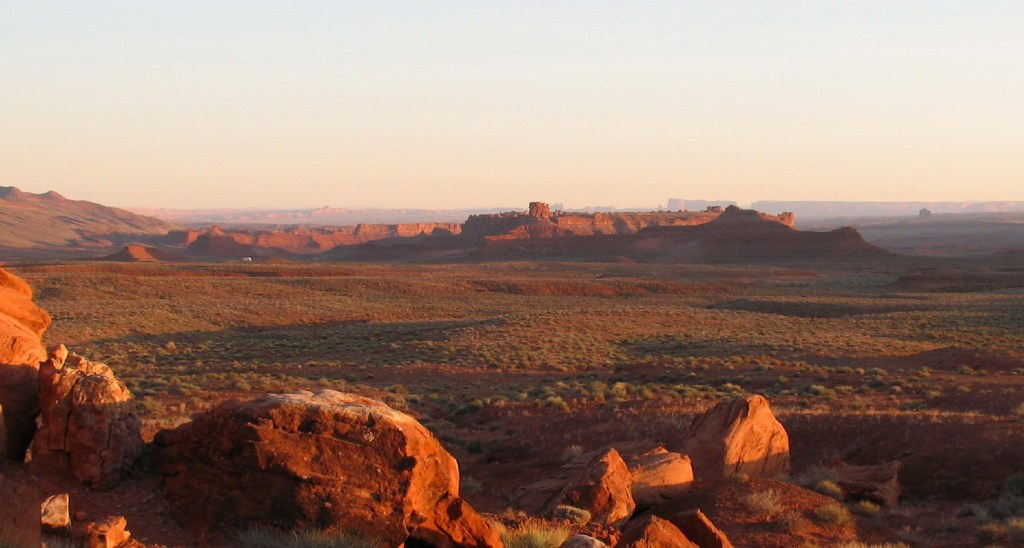 We are on a exposed open knoll, overlooking many miles of iconic rock structures. There are a dozen tiny tents gathered around a campsite, maybe a mile away. Later, a lone man camping and sleeping in his SUV takes a similar spot on another far distant hill. Our SUV, as planned, protects us from his line of sight.