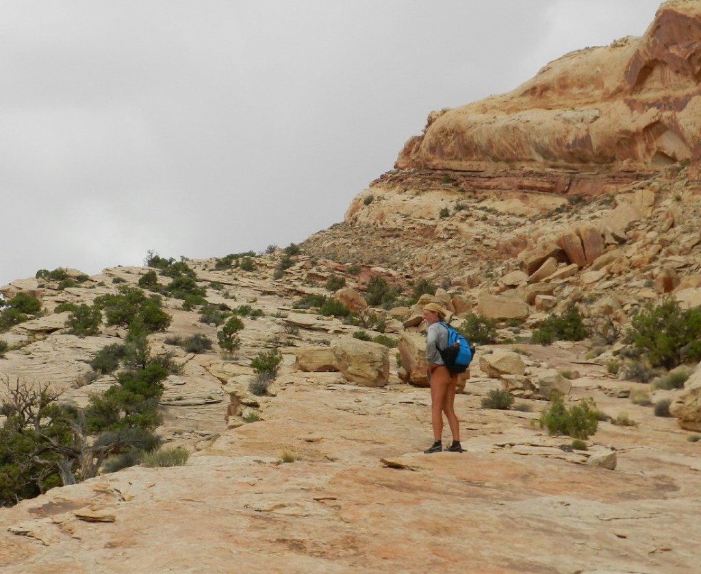 We’re in Bears Ears National Monument. I believe that we have found a remote and less used canyon etched into the Comb Ridge near the Lower Butler Wash Road. Arriving in the afternoon and scouting, we had been blasted by a massive dust storm into last night. It brought us cooler calmer weather this morning, quite peaceful in contrast. This morning, we’re heading up into the canyon to explore the rugged geological awe and search for evidence of an 800 to 1500 year old Native American lifestyle.