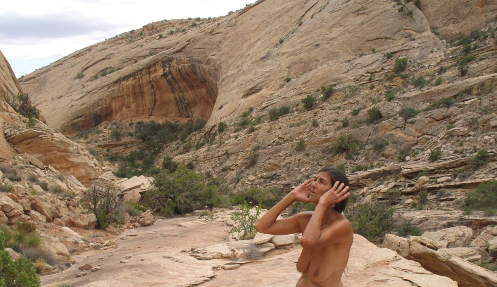 There is a wind break for us and then a break in the winds, demanding of us to strip, once again. It feels good all over after being confined in a t-shirt and backpack. The removal of shoes completes my sense of an air bath.