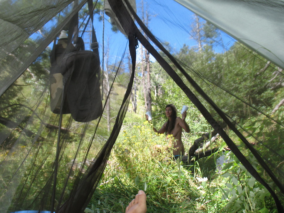 Another strategy is to backpack a few miles in and establishing a base camp. From this, there is the delight of awakening to true nature, and we can freehike further from there with much less effort and far fewer people. We have more time to stop and smell the wild roses. It isn’t so much the goal, but the moment-by-moment walk in the between. Would you rather pound through ten or more miles in a day with a full pack, or three to six with minimal weight from a base camp? A personal nude playground can become huge.